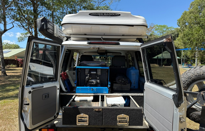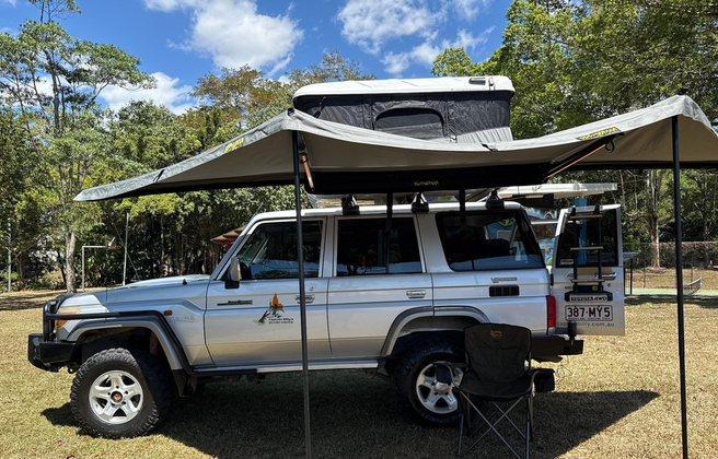The Landcruiser Wagon Roof Top Tent can also be used to tow our Cape York Kamper trailer to the Cape. Your 4WD Bushranger provides comfortable access to endless new opportunities in Cape York Peninsula, scenic touring, fishing, hiking, Aboriginal rock art, National Parks and the many creek crossings along the old Telegraph Track are part of the adventure of any Cape York trip. Plus With high & low ratio 4WD, factory fitted snorkel, manual transmission, Bull Bar and Winch 9500xp, 5 Watt 40 Channel UHF Radio, Roof rack, Dual batteries, Old Man Emu Off road suspension and tyres this is a great vehicle for getting off-road and exploring the back-tracks of Cape York.