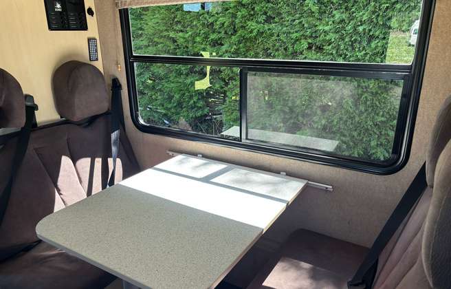 On slower days, you can even leave the bed made up, while still enjoying full use of the living space. The passenger seating directly behind the driver includes four belted seats, making it easy to keep an eye on the kids while on the road.